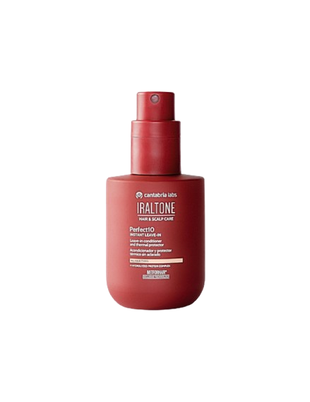 IRALTONE Perfect10 Instant Leave-In Acondicionador es un acondicionador capilar sin aclarado en formato spray que ofrece un cuidado integral en un solo gesto para todo tipo de cabello. Formulado para aportar hasta diez beneficios esenciales, mejora la suavidad y elasticidad del cabello, reestructura las zonas secas o dañadas y refuerza la fibra capilar para aumentar su resistencia a la rotura. Además, facilita el desenredado y el peinado, controla el frizz y aporta un brillo natural y saludable, al tiempo que protege la fibra capilar frente al daño térmico causado por secadores, planchas u otras herramientas de peinado, y ayuda a preservar el color. Su textura ligera y de rápida absorción permite una aplicación práctica sobre cabello húmedo o seco.