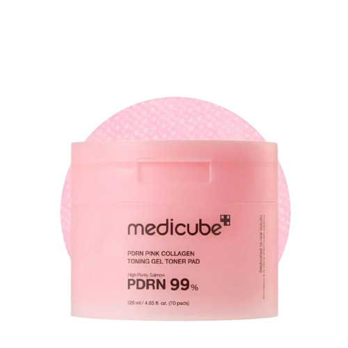 PDRN Pink Collagen Toning Gel Toner Pad de Medicube es un tratamiento facial en formato almohadilla que combina la comodidad de un tónico con la eficacia de una esencia reafirmante.