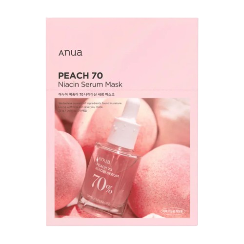 Descubre la Anua Peach 70 Niacin Serum Mask, una mascarilla en tejido enriquecia con un 70% de extracto de melocotón y niacinamida para iluminar, hidratar y suavizar la piel.