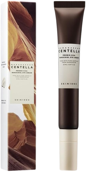Madagascar Centella Probio-Cica Bakuchiol Eye Cream de SKIN1004 es una crema para el contorno de ojos que combina ingredientes suaves y eficaces para cuidar una de las zonas más delicadas del rostro: hidrata, calma, suaviza y combate los primeros signos de la edad, incluso en pieles sensibles.