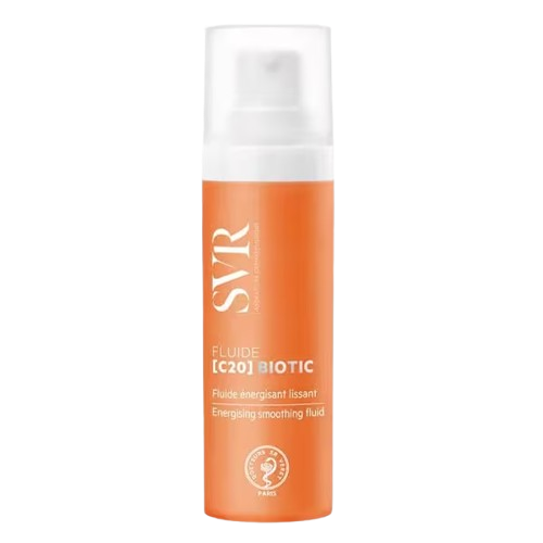 SVR Fluide [C20] Biotic es un tratamiento revitalizante de textura ligera y rápida absorción que transforma la piel apagada y fatigada en un cutis luminoso, uniforme y lleno de vida. Su fórmula avanzada con un 20 % de vitamina C optimizada actúa como un potente energizante celular, estimulando la regeneración cutánea y aportando un efecto glow inmediato. A la vez, hidrata intensamente y mejora la elasticidad de la piel, suavizando líneas de expresión y arrugas. Ideal para quienes buscan una piel más fresca, uniforme y con un brillo natural, este fluido devuelve vitalidad y confort desde las primeras aplicaciones.