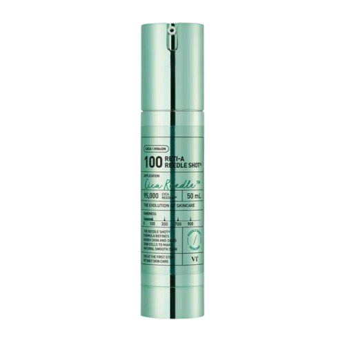 VT Cosmetics – Reti-A Reedle Shot 100 es una ampolla de alto rendimiento treatment, especialmente desarrollada para refinar la textura, elasticidad y luminosidad de la piel. A través de una innovadora combinación de tecnología de microagujas y cuidado avanzado con retinol, el producto trata eficazmente el tono desigual de la piel, la textura áspera y los primeros signos de envejecimiento.