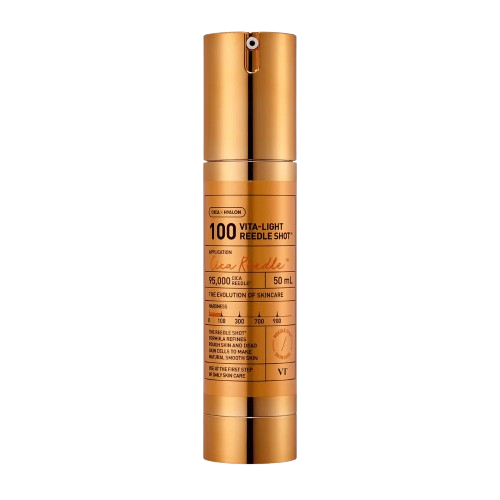 VT Cosmetics – Vita-Light Reedle Shot 100 es un tratamiento innovador para el cuidado de la piel que combina la tecnología de microagujas con ingredientes iluminadores para proporcionar a la piel un tono más uniforme y una estructura mejorada. Con la ayuda de partículas patentadas similares a microagujas (Hydrolyzed Sponge), los ingredientes activos penetran más profundamente en la piel y estimulan la renovación celular – perfecto para quienes desean reducir el tono desigual de la piel y las pigmentaciones.