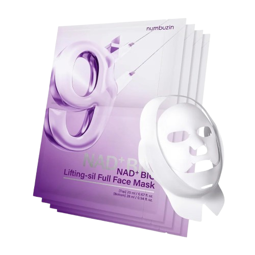 Numbuzin - Nº9 NAD Bio Lifting-sil Full Face Mask Set es una mascarilla facial innovadora que combina el poder del NAD (Nicotinamida adenina dinucleótido) con tecnología avanzada de silicona para proporcionar a la piel un efecto reafirmante y rejuvenecedor efectivo. La mascarilla apoya el proceso natural de regeneración de la piel y aporta hidratación y nutrición intensas, lo que resulta en una piel más firme, suave y juvenil.